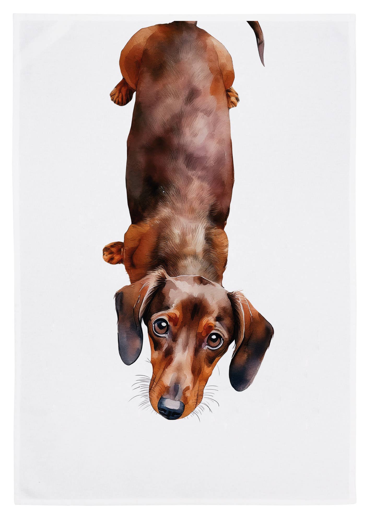 Dein treuer Begleiter in der Küche Wer kann diesem Blick schon widerstehen? Mit dem exklusiven Geschirrtuch von Miss Cotton zieht geballte Dackel-Liebe in dein Zuhause ein. Das hochwertige Motiv zeigt einen drolligen Dackel in der typischen „Männchen-machen“-Pose, der dich mit seinen großen, treuen Kulleraugen direkt anschaut. Ein absolutes Must-have für alle Hundefreunde und Fans der charmanten Vierbeiner. Durch den detailreichen Digitaldruck kommt die feine Aquarell-Optik besonders gut zur Geltung – jede Farbnuance des glänzenden Fells wirkt täuschend echt.