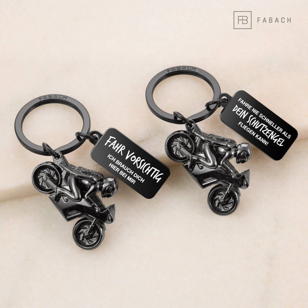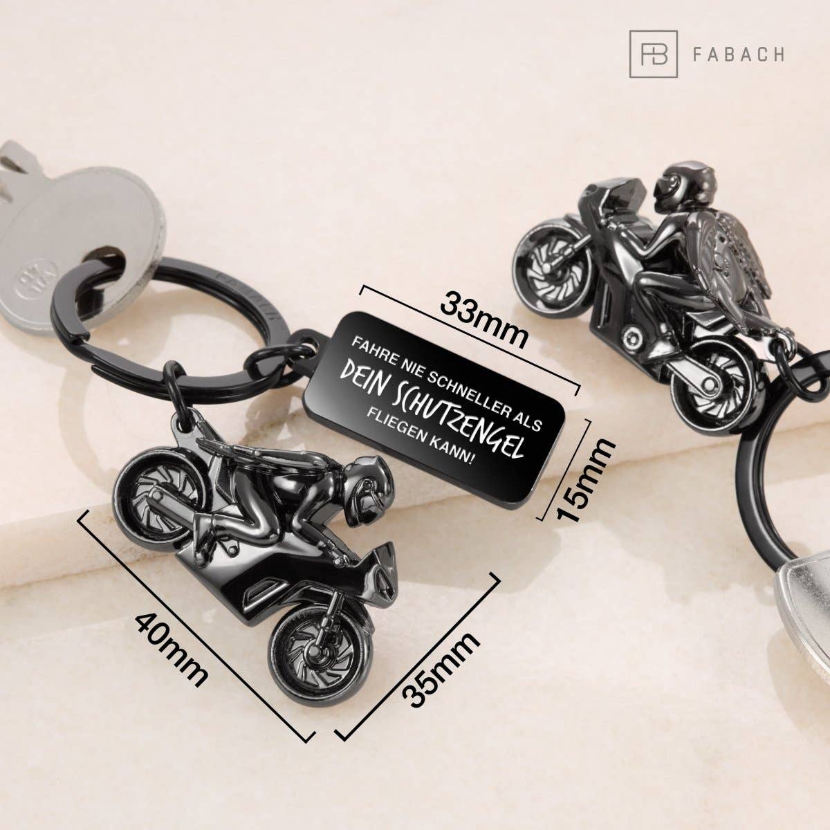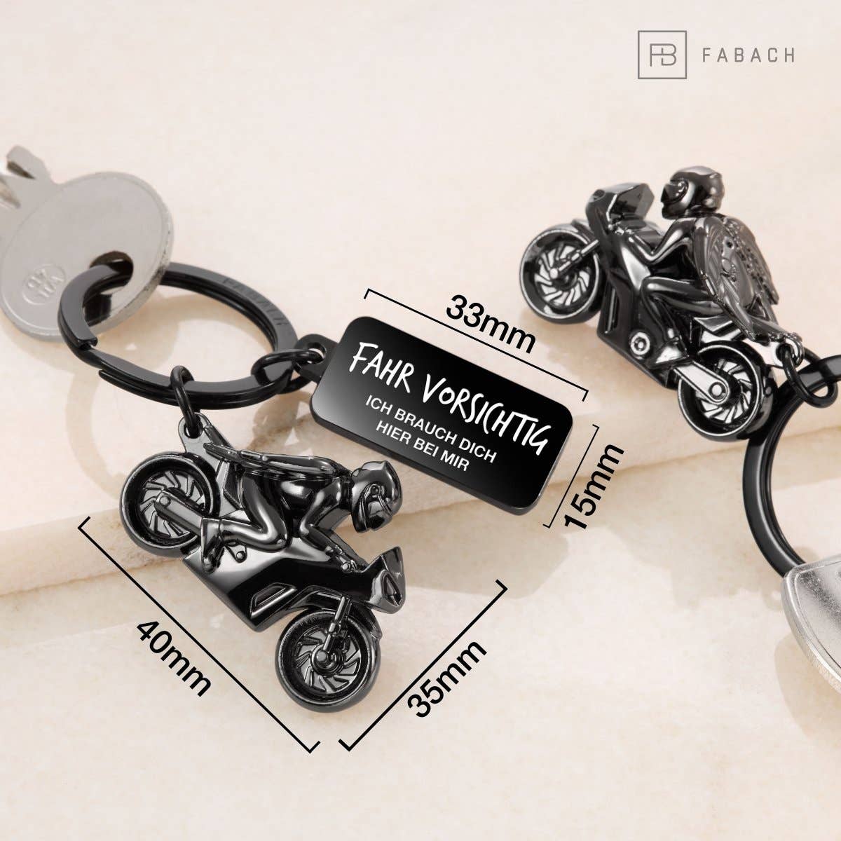 🏍️ Der Motorrad-Schlüsselanhänger als Schutzengel-Glücksbringer: Der Fahr-vorsichtig-Schlüsselanhänger mit Gravur deinen Schutzengel auf dem Motorrad.